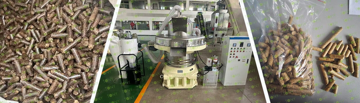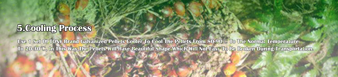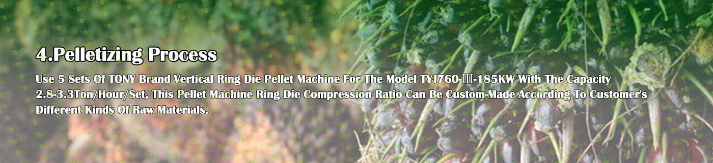 4. Основна машина: цялостна дробилка, чукова мелница, сушилня с ротационен барабан, машина за пелети TONY TYJ760-Ⅲ-185KW, охладител за пелети, опаковъчна машина и лентови транспортьори