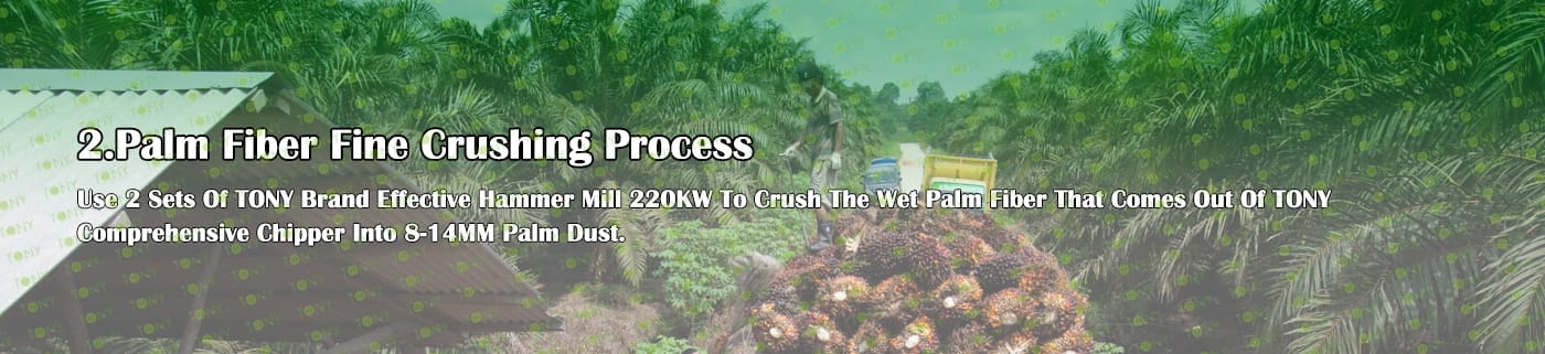 A. Този процес се използва главно за смачкване на 25-55 mm палмови влакна в 8-14 mm палмов прах.