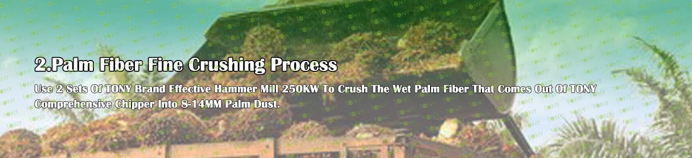 A. Този процес се използва главно за смачкване на 25-55 mm палмови влакна в 8-14 mm палмов прах.