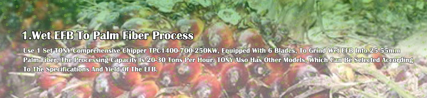 | 1. За смилане на EFB в 25-55 мм палмово влакно. 2.Модел: TPC1400-700-250KW с 6 Baldes*1set 3.Капацитет: 20-30 тона/час. |