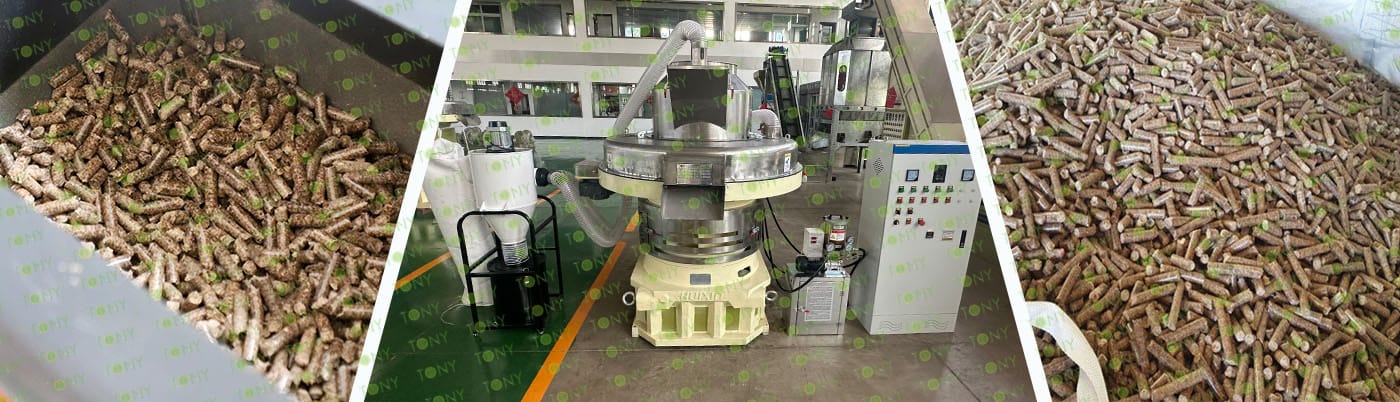4. Основна машина: цялостна дробилка, чукова мелница, голям хидравличен силоз за съхранение, въртяща се барабанна сушилня, машина за пелети TONY TYJ760-Ⅲ-160KW, охладител за пелети, опаковъчна машина и лентови транспортьори