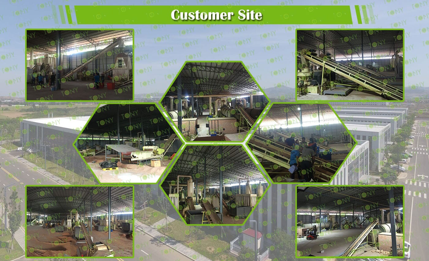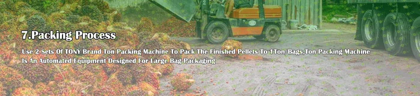 6. Основно оборудване: Изчерпателна дробилка- TPC1600-1000-250KW, ефективна чукова мелница-TFD85*250-250KW, голям хидравличен силоз за съхранение TONY, сушилня с ротационен барабан-2,5*24m, пелетна машина TONY- TYJ760-Ⅲ-160KW, поцинковани пелети Охладител, машина за пакетиране на тонове и лентови транспортьори