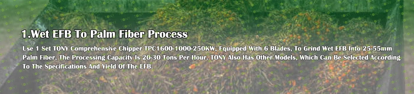 | 1. За смилане на EFB в 25-55 мм палмово влакно. 2.Модел: TPC1600-1000-250KW с 6 остриета*1 комплект 3.Капацитет: 20-30 тона/час. |