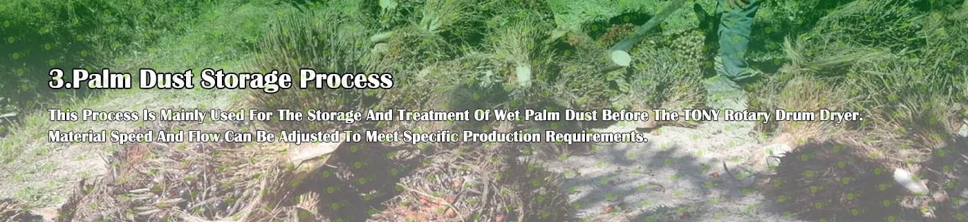 B. Голям хидравличен силоз за съхранение на марката TONY за съхранение на палмовия прах, който излиза от чуковата мелница. Този процес може да бъде по избор от клиента. Ако клиентът не избере контейнера за съхранение, той може да съхранява палмовия прах директно на земята, което може да изисква малко труд.