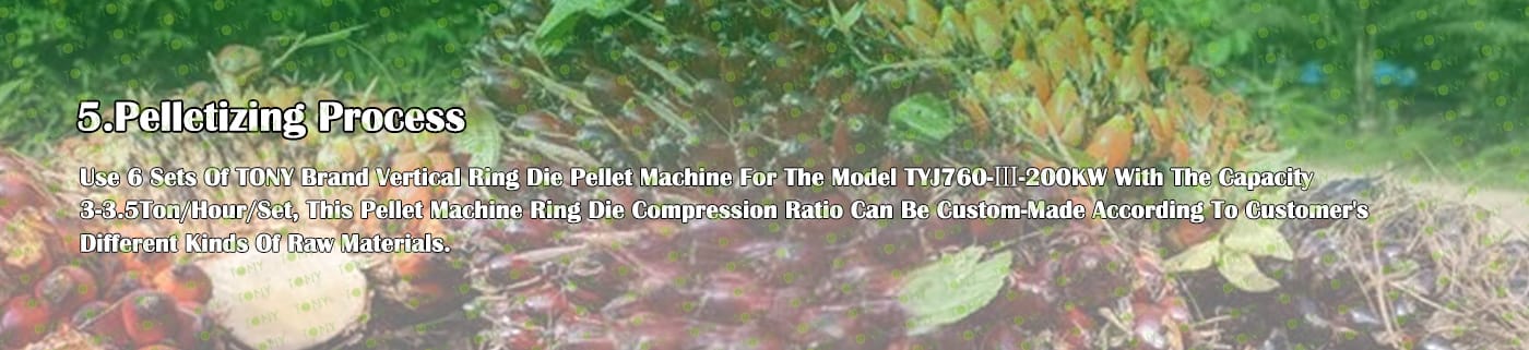 5. Процес: Процес на раздробяване - Процес на фино раздробяване - Процес на съхранение на палмов прах - Процес на сушене - Процес на пелетизиране - Процес на охлаждане - Процес на опаковане