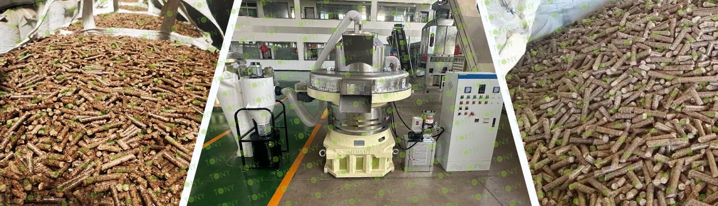 4. Основна машина: цялостна дробилка, чукова мелница, голям хидравличен силоз за съхранение, сушилня с ротационен барабан, машина за пелети TONY TYJ760-Ⅲ-200KW, охладител за пелети, опаковъчна машина и лентови транспортьори