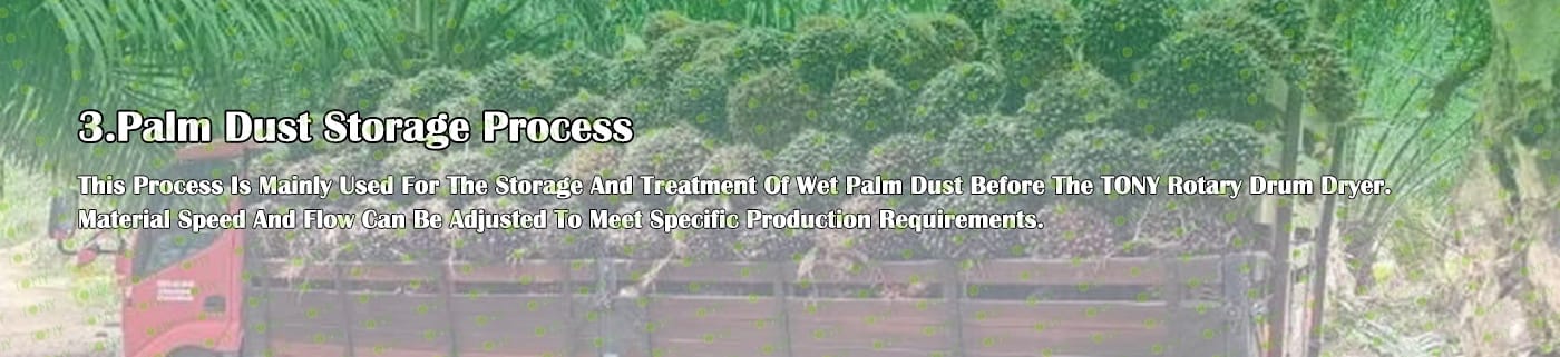 B. Голям хидравличен силоз за съхранение на марката TONY за съхранение на палмовия прах, който излиза от чуковата мелница. Този процес може да бъде по избор от клиента. Ако клиентът не избере контейнера за съхранение, той може да съхранява палмовия прах директно на земята, което може да изисква малко труд.