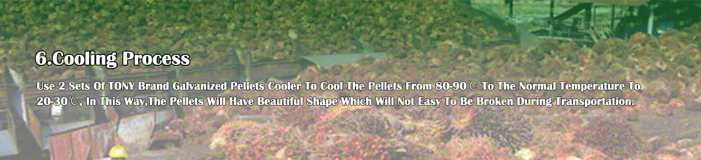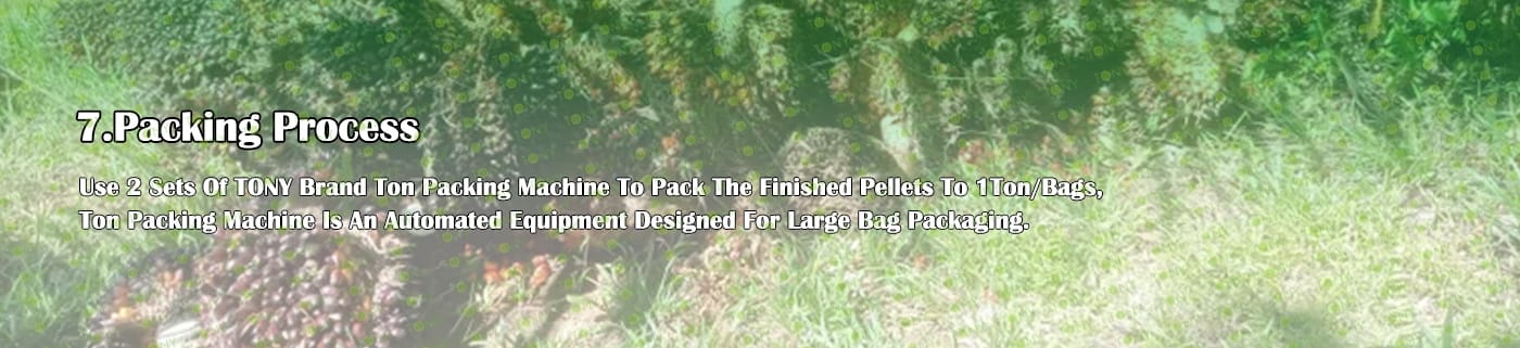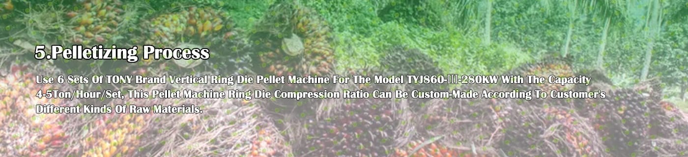 5. Процес: Процес на раздробяване - Процес на фино раздробяване - Процес на съхранение на палмов прах - Процес на сушене - Процес на пелетизиране - Процес на охлаждане - Процес на опаковане