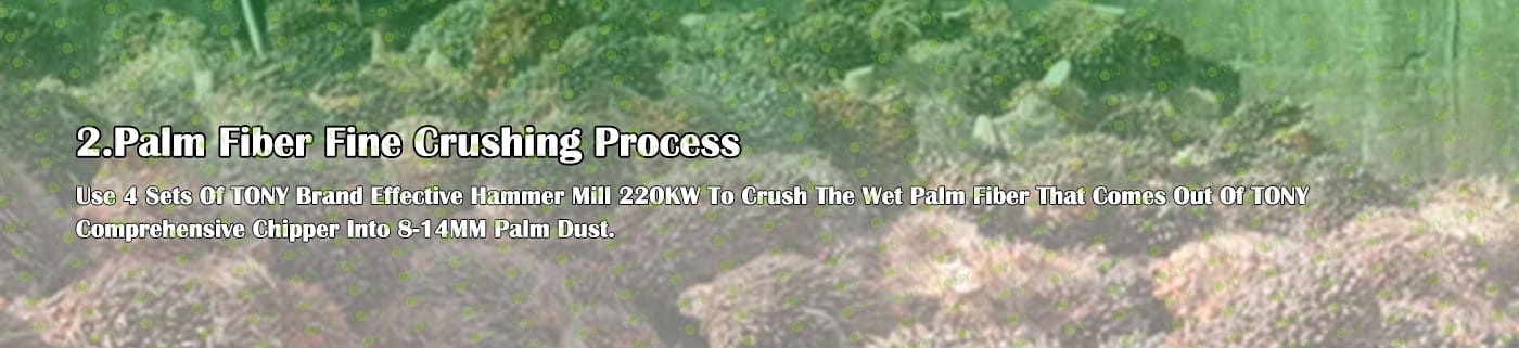 A. Този процес се използва главно за смачкване на 25-55 mm палмови влакна в 8-14 mm палмов прах.