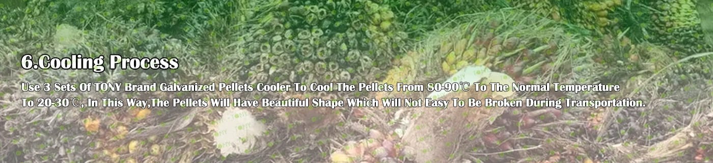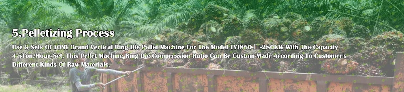 5. Процес: Процес на раздробяване - Процес на фино раздробяване - Процес на съхранение на палмов прах - Процес на сушене - Процес на пелетизиране - Процес на охлаждане - Процес на опаковане