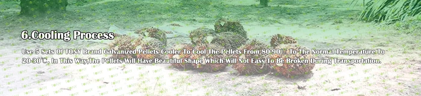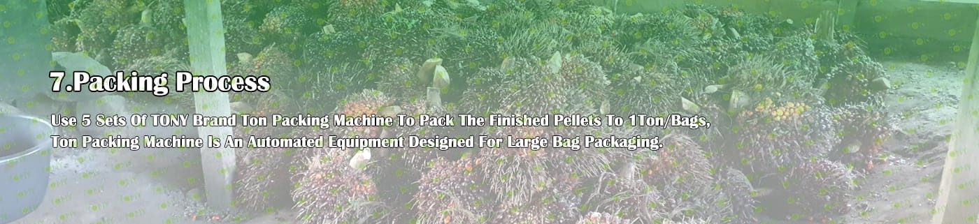 5. Процес: Процес на раздробяване - Процес на фино раздробяване - Процес на съхранение на палмов прах - Процес на сушене - Процес на пелетизиране - Процес на охлаждане - Процес на опаковане