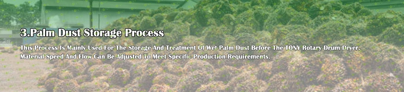B. Голям хидравличен силоз за съхранение на марката TONY за съхранение на палмовия прах, който излиза от чуковата мелница. Този процес може да бъде по избор от клиента. Ако клиентът не избере контейнера за съхранение, той може да съхранява палмовия прах директно на земята, което може да изисква малко труд.