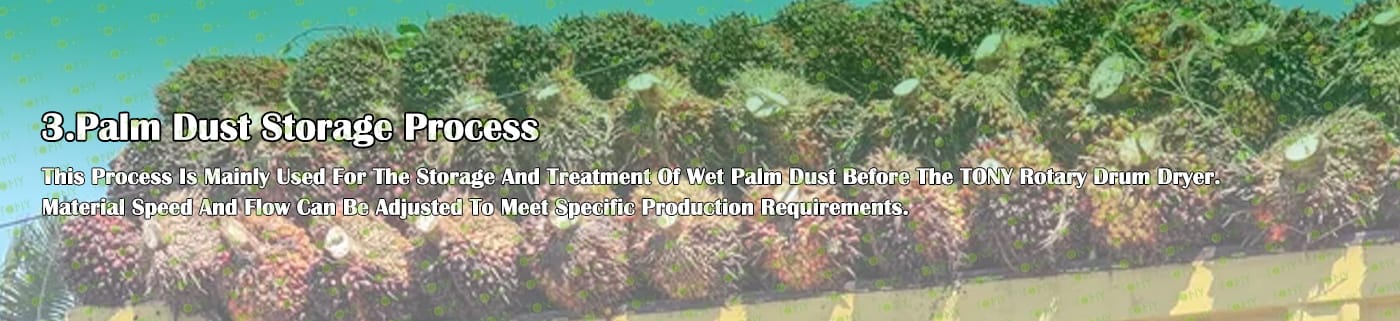 B. Голям хидравличен силоз за съхранение на марката TONY за съхранение на палмовия прах, който излиза от чуковата мелница. Този процес може да бъде по избор от клиента. Ако клиентът не избере контейнера за съхранение, той може да съхранява палмовия прах директно на земята, което може да изисква малко труд.