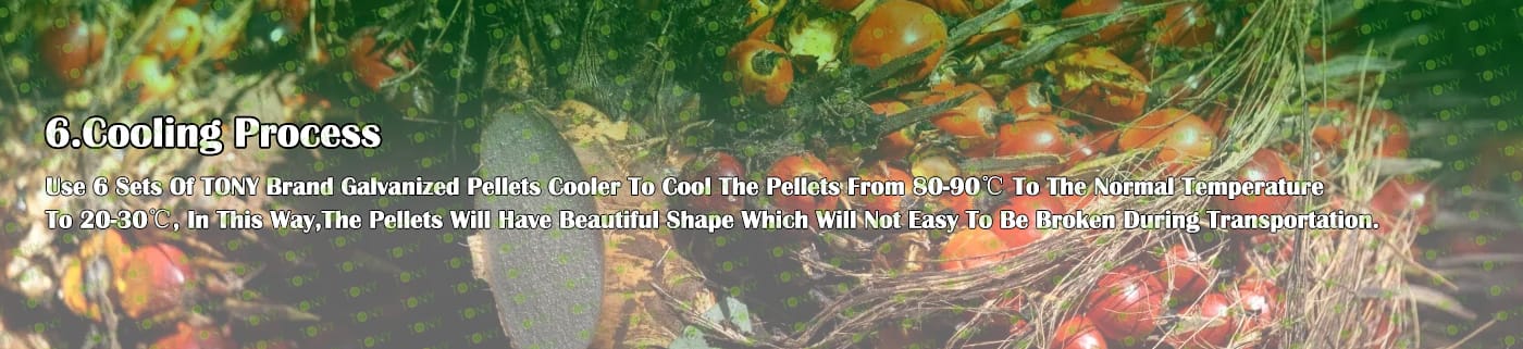 5. Процес: Процес на раздробяване - Процес на фино раздробяване - Процес на съхранение на палмов прах - Процес на сушене - Процес на пелетизиране - Процес на охлаждане - Процес на опаковане