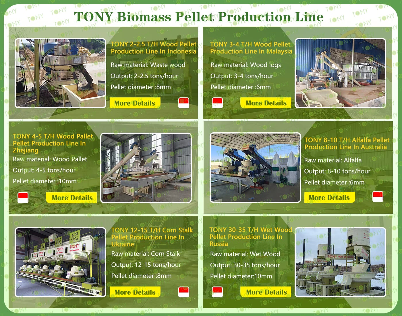 រោងចក្រផលិតបន្ទះសៀគ្វីឈើសើមម៉ាក TONY ម៉ាក 48-60តោន/ម៉ោង អាចយកបន្ទះឈើសើម ប្រភេទផ្សេងៗនៃឈើ - សម្ភារៈជីវម៉ាស់ដែលពាក់ព័ន្ធដូចជា បន្ទះឈើ សាខាឈើ និងកោរសក់។ បន្ទាប់ពីការកែច្នៃ និងកែច្នៃរួច បន្ទះឈើសើមត្រូវបានពង្រឹងទៅជាឥន្ធនៈគ្រាប់ឈើដែលមានដង់ស៊ីតេខ្ពស់។ ឥន្ធនៈនេះគឺជាការជំនួសដ៏ល្អសម្រាប់ធ្យូងថ្ម និងប្រេង ហើយដើរតួនាទីក្នុងការអភិរក្សថាមពល និងកាត់បន្ថយការបំភាយឧស្ម័ន។ នាពេលបច្ចុប្បន្ន វាត្រូវបានប្រើប្រាស់យ៉ាងទូលំទូលាយនៅក្នុងតំបន់ដែលសម្បូរទៅដោយធនធានឈើ។