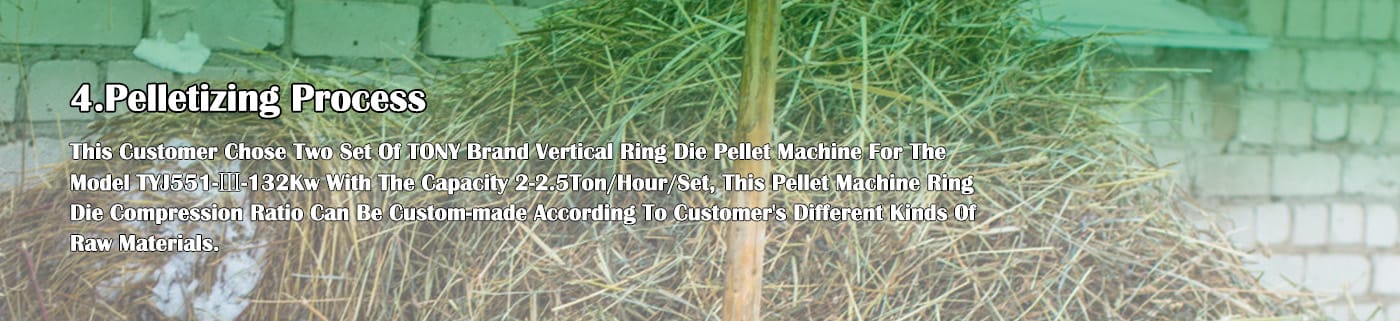 As a professional hay pellet factory manufacturer with more than 25 years of history in China. TONY Company can provide customers with a wide range of vertical ring mold hay and various grass pellet machines capacity from 0.8T/ Hour to 100T/ Hour to customer's demand.
