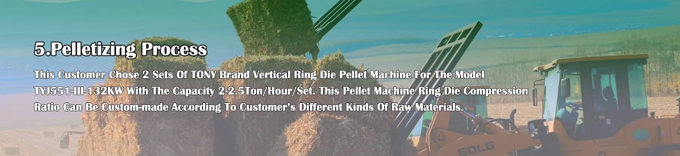 6. Main Machine:Straw Cutter,Hammer Mill,Soil Removel Screener- Rotary Drum Dryer,TONY Pellet MachineTYJ551-Ⅲ-132KW,Pellets Cooler,Packing Machine And Belt Conveyors